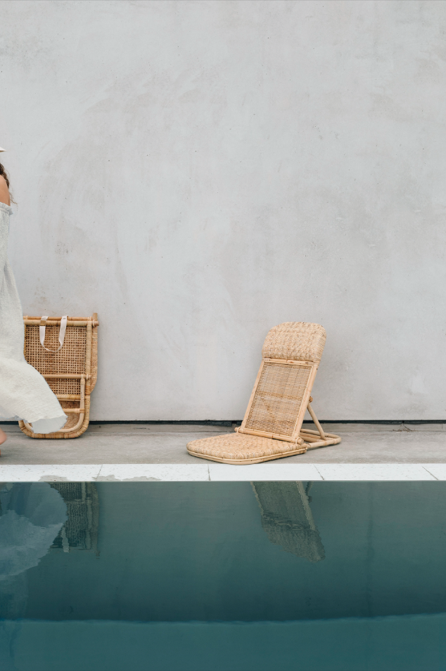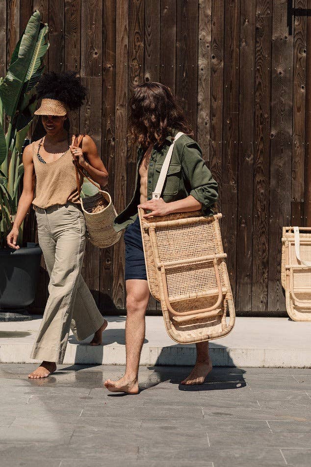 Unser neues Rattan-Picknick ist eine schlanke, leichte Sonnenliege.